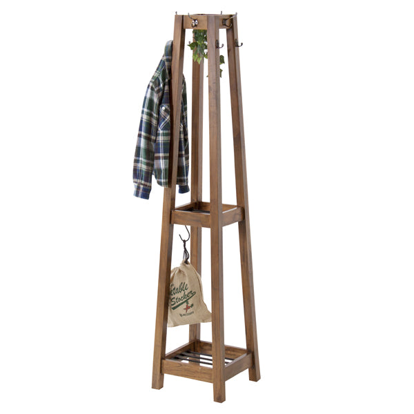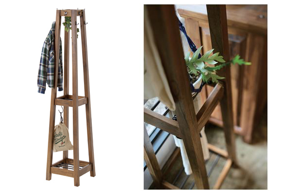 こだわりの使いやすさS字フックが4個付属しているので、ストールなども掛けることができ、中間部と下部にはカバンなどが置ける棚付きです。玄関先はもちろん、インテリアとしても楽しめるデザインなのでリビングや寝室でもお使いいただけます。