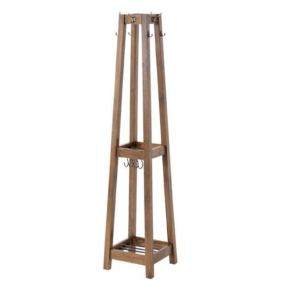 S字フックが4個付属しているので、ストールなども掛けることができ、中間部と下部にはカバンなどが置ける棚付きです。玄関先はもちろん、インテリアとしても楽しめるデザインなのでリビングや寝室でもお使いいただけます。