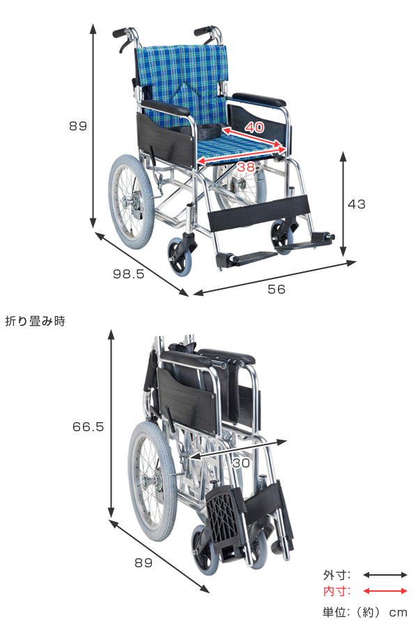 車いす 介助式 背折れタイプ 座面幅38cm 非課税