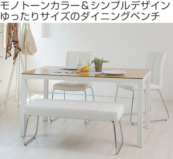 ![]() おすすめポイント 幅100センチ、ゆったりサイズのダイニングベンチクロームメッキのスチールフレームにシート部分はフェイクレザー合成皮革のダイニングベンチです。座面にはウレタンフォームが内蔵されておりクッション性があるので座り心地がいいです。ゆったり幅サイズで自由度のいダイニングベンチを取り入れて、ワンランク上のインテリア空間を演出しませんか? モノトーンカラー&シンプルデザインシンプルなダイニングベンチなので、スタイリッシュな光沢感のあるダイニングテーブルと合わせて「シンプルでモダン」な雰囲気に。また、木製のダイニングテーブルと合わせて「ナチュラル」な雰囲気に。シンプルなモノトーンカラーなので様々なインテリアに合わせていただけます。 ![]() 組み合わせているテーブルはこちら ●ARGANO ダイニングテーブル ガラス天板 幅135 カラー ![]() サイズ
