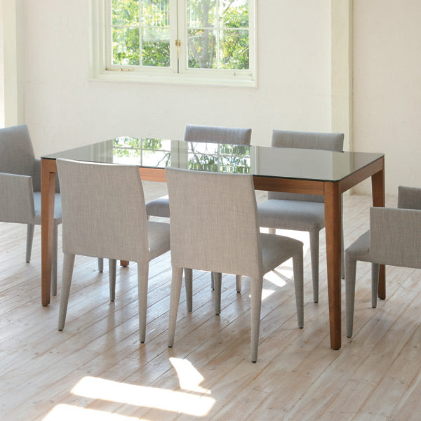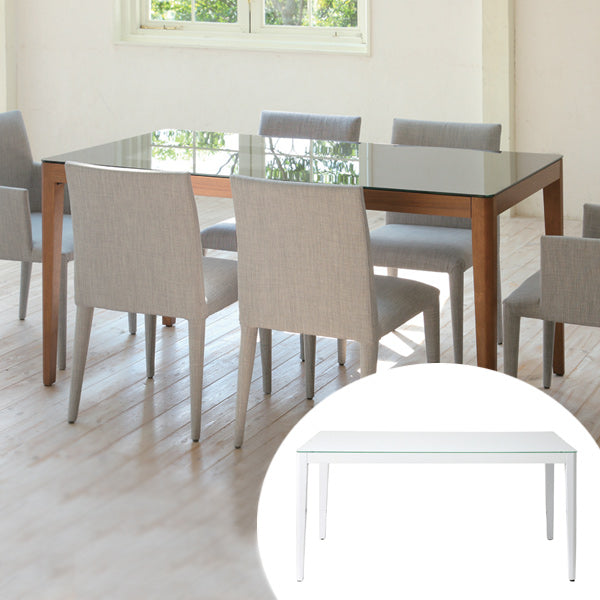 上質な空間を演出する、光沢あるガラストップダイニングを際立たせるガラストップのダイニングテーブルです。光沢のある天板が美しく、上質な空間を演出します。ホワイトカラーは清潔感が漂い、ブラックは木目と強化ガラスのコントラストが空間を引き締めます。スタイリッシュでモダンな空間から、モノトーン・ナチュラル・男前インテリアまで、幅広いテイストに合わせていただけます。