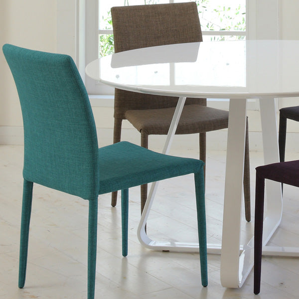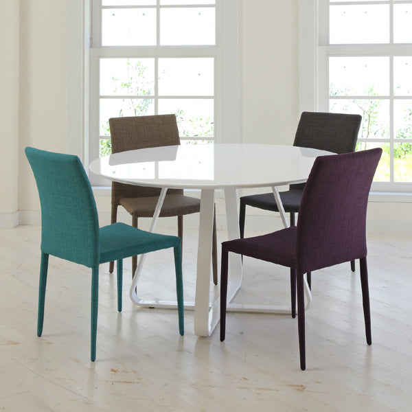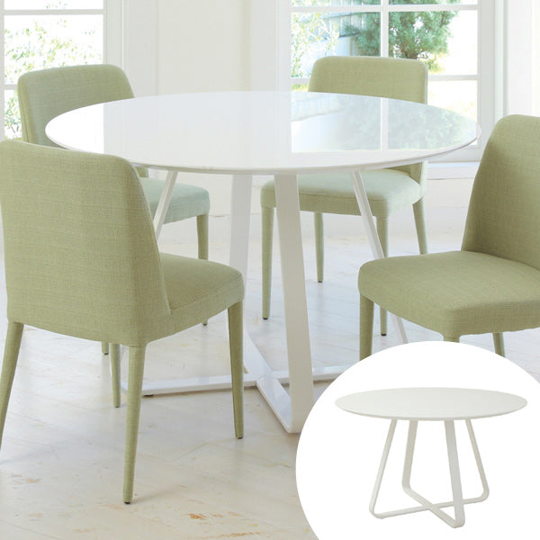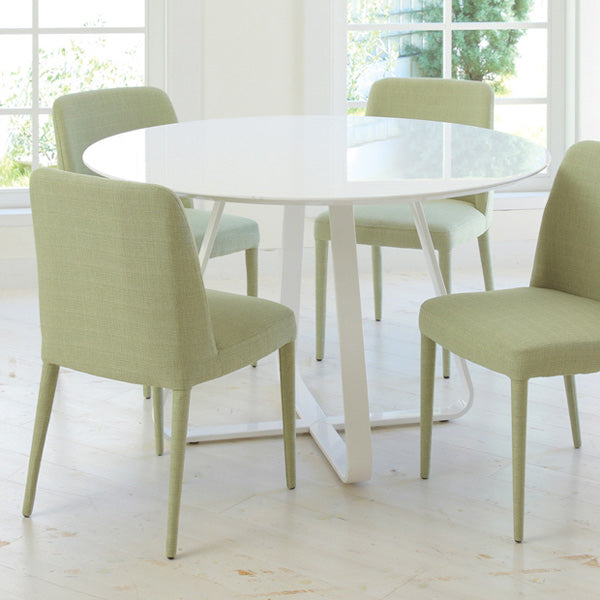 美しい光沢が特徴のハイグロス仕上げの天板のダイニングテーブルです。脚部は塗装されたスチール製でクロスしたおしゃれなデザインです。シンプルで清楚、そして高級感に溢れた素敵なダイニングテーブルです。