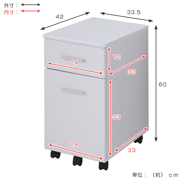 | サイズ | 約 幅33.5×奥行42×高さ60(cm) 上段引出内寸 幅24×奥行33×高さ12(cm) 下段引出内寸 幅24×奥行33×高さ13.5(33)(cm) |