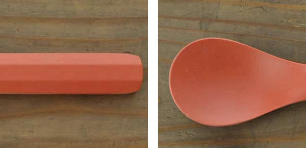 手で持つ柄の部分は角ばったフォルムで滑りにくく、すくう部分の内側は口当たりの良いツルッとした質感です。