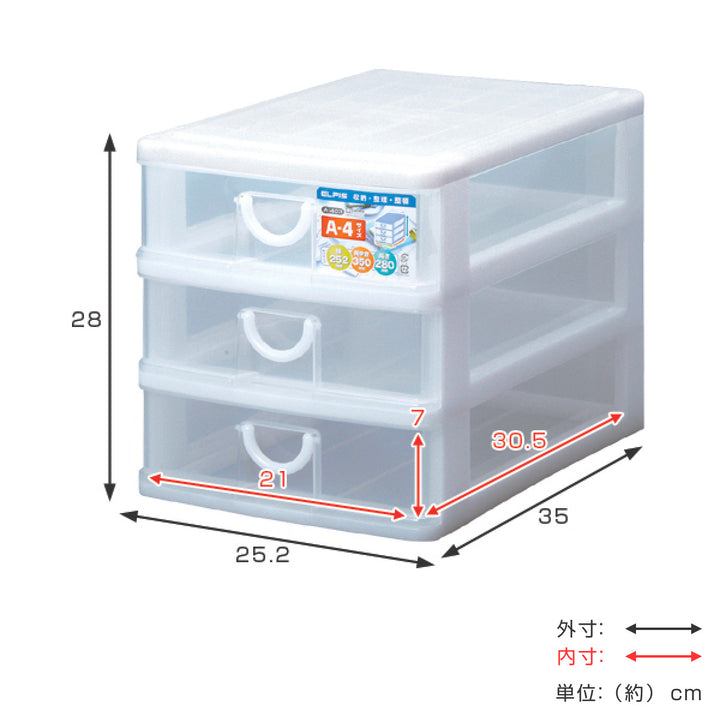 レターケース 幅25.2×奥行35×高さ28cm A4 3段 浅型 収納ケース