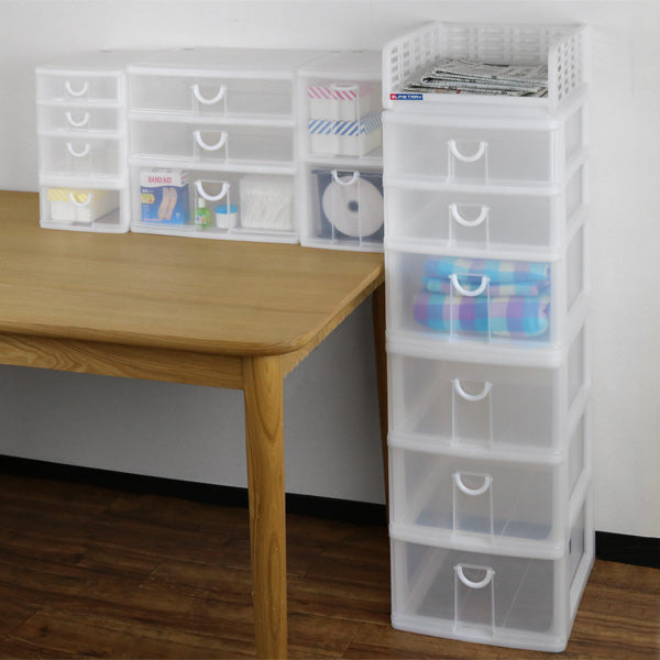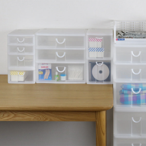シリーズでそろえることで、統一感が生まれスッキリとした印象になります。細々とした日用品、雑貨、食品ストック、コスメ、お薬など小物の整理にぴったりです。豊富なサイズバリエーションから自分仕様にカスタマイズをお楽しみください。