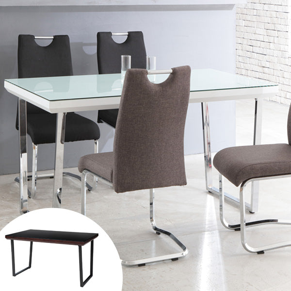 | 材質 | 【ホワイト】 天板:6mm厚強化ガラス(飛散防止フィルム加工)+中質繊維板(MDF)ラッカー塗装 脚:スチール クロムメッキ 【ブラック】 天板:6mm厚強化ガラス(飛散防止フィルム加工)+天然木化粧繊維板(ウォルナット突板+MDF)ラッカー塗装 脚:スチール 粉体塗装 |
