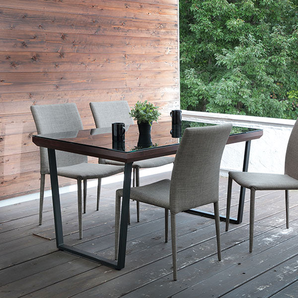 ガラストップの輝きがとても美しいダイニングテーブルです。シンプルでスタイリッシュなデザインで幅広いインテリアに合わせていただけます。