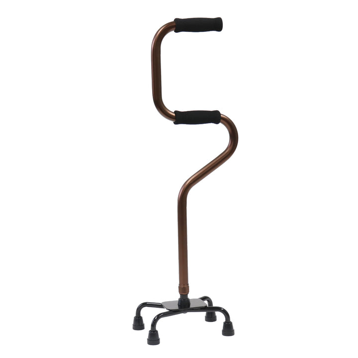 4点で支えるため接地面が広くなり、安定した歩行をサポートします。立ち座りの動作も体重をしっかりかけられるので、楽にできます。室内など平坦な場所での利用に適しており、一本杖では歩行が不安定な方、筋力低下や麻痺のある方におすすめです。