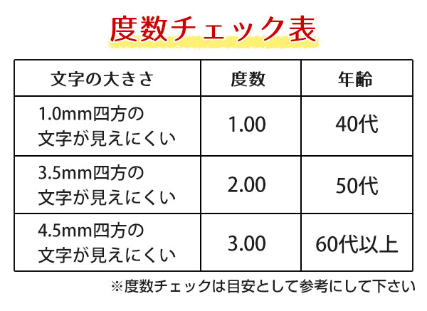 ●度数は+1.00、+2.00、+3.00の3タイプからお選びいただけます。