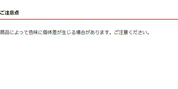 | 注意事項 | ※商品によって色味に個体差が生じる場合があります。ご注意ください。 |