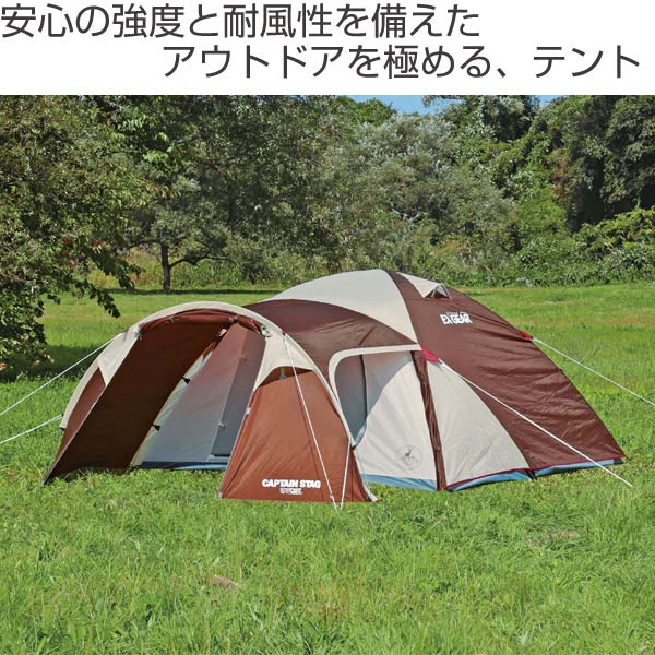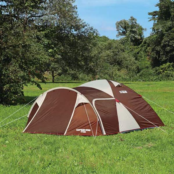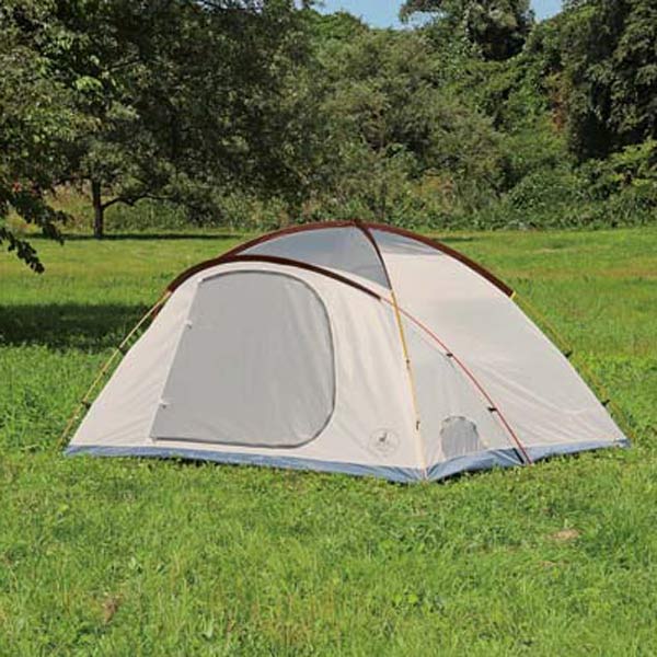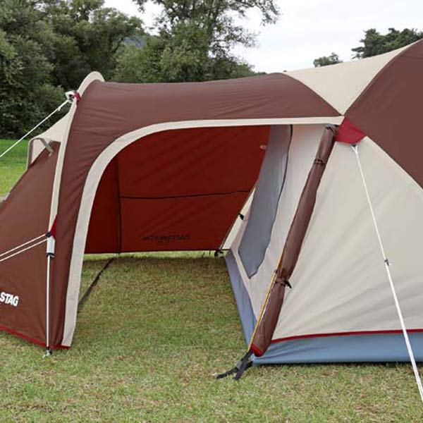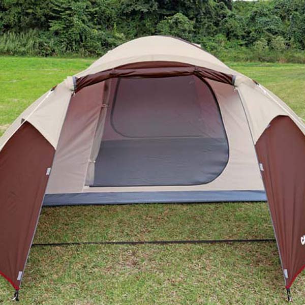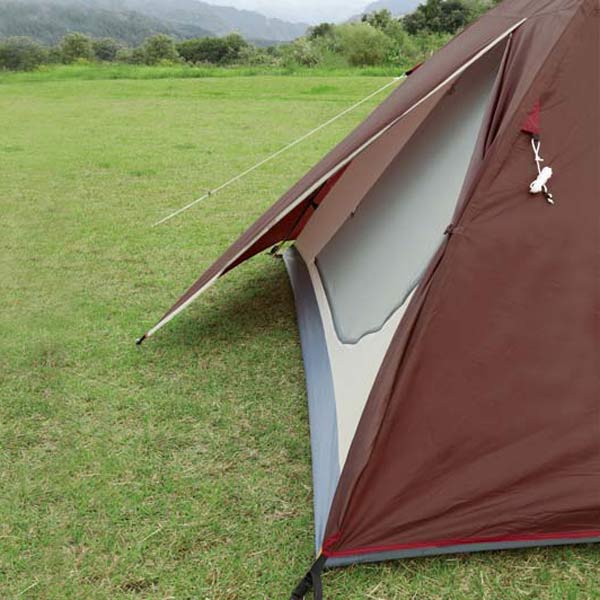 テントの高さを抑え、インナー3本・前室1本のフレームワークで強度と耐風性を確保しました。ワイドな前室に便利なサイドの出入口を装備したツールームドームテントです。