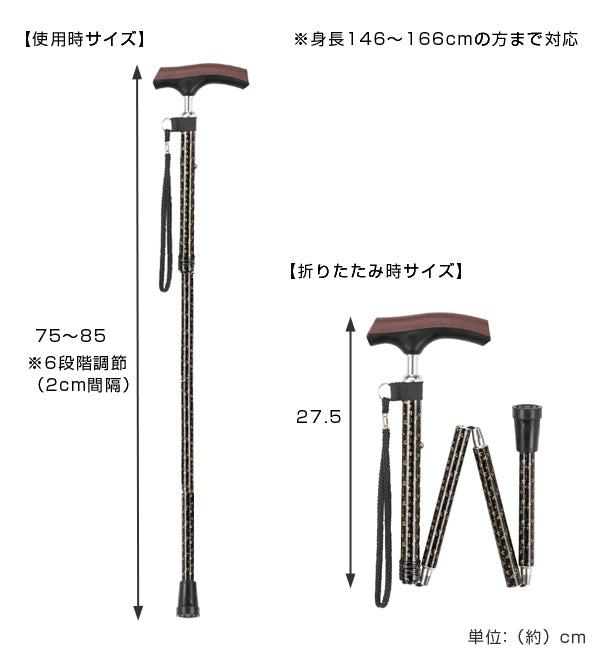 伸縮タイプ 杖の長さは、長さ75cm〜85cmまで調整できます。 |