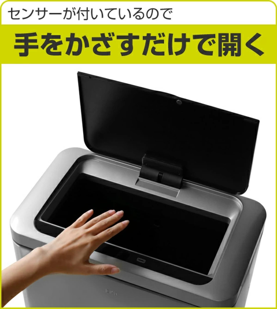 手がふさがっている時や汚れている時、ゴミ箱の蓋が開けにくくて困ったことはありませんか?このセンサー付きゴミ箱なら、手をかざすだけで簡単に開けられます。かざしている間は閉まりませんので、開け続けたい時は手をもう一度かざしてください。