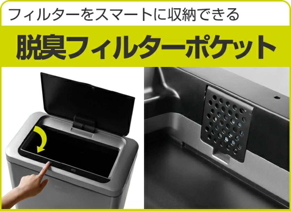 蓋の内側に脱臭フィルターを収納するポケットが付いています。(フィルターは別売りです。)