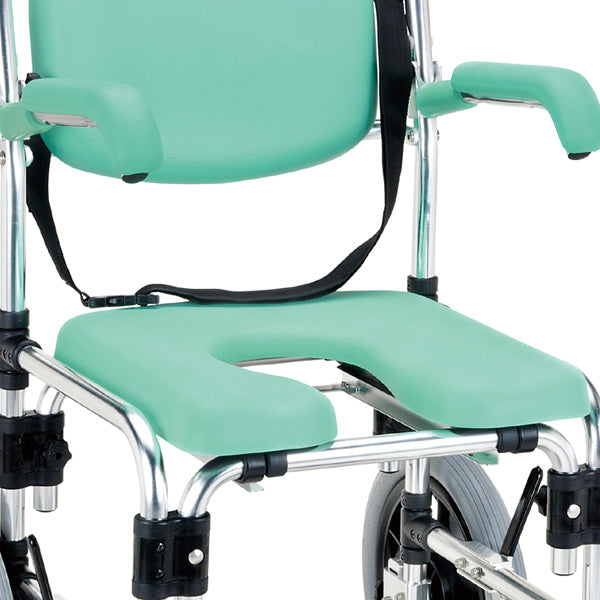 背もたれ、座面にはポリウレタンフォームという素材を使用しており、肌触りが良いのはもちろんのこと、柔らかく、復元性がありクッション性が高いのでご使用になられる方の身体への負担を軽減します。また、ハンドグリップ部分には水を吸わない性質で弾力性があり、丈夫で千切れにくいEVAという素材を採用していますのでしっかりと握ることができます。