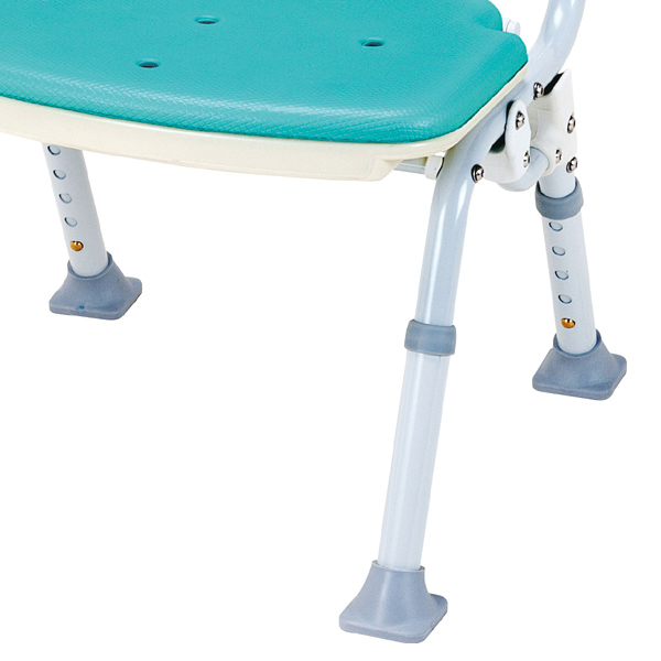 安心なラバー脚シャワーベンチの脚の先端は水で滑らないようにプラスチックラバーのキャップが付いています。ラバー製なので滑りやすい床でも安心してお使いいただけます。 |