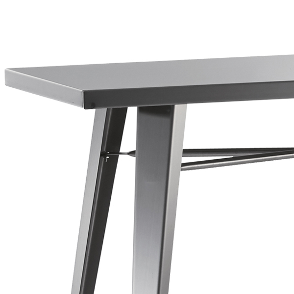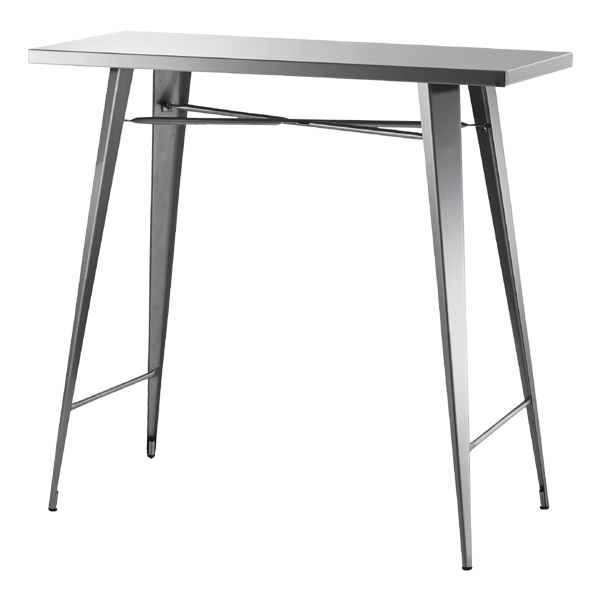 洗練されたインダストリアルテイストの全面ステンレス製のカウンターテーブルです。ステンレス特有の清潔感と、マットな質感の光沢が輝くテーブルは、生活感のないスタイリッシュなデザインです。ダイニングシーンだけでなくスツールと組み合わせて使用することもできます。重厚感ある天板を支える脚は下に行くほど細くなるテーパー脚になっているので圧迫感の少ないデザインになっています。