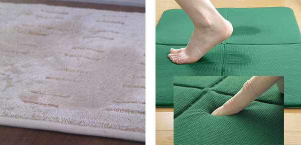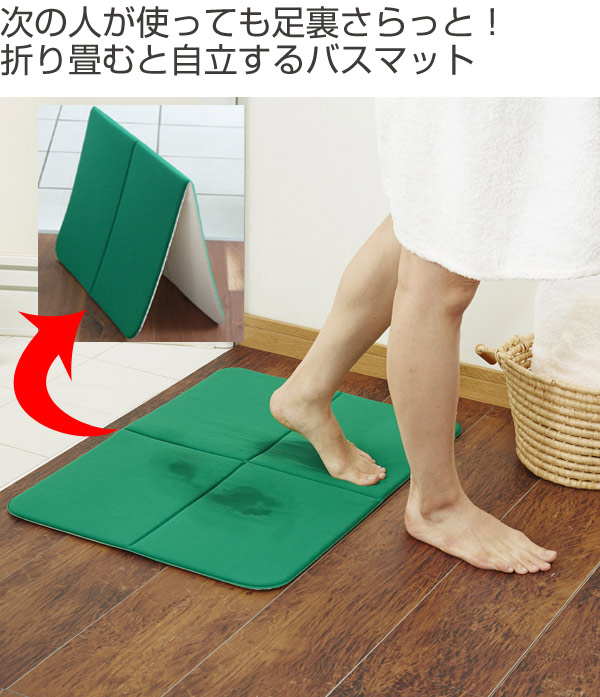 生地には吸水性・拡散性に優れた特殊繊維を使用しており、従来品の約4倍の速さで乾燥します。だから次の人が入る頃にはもう乾いていてさらっと♪濡れてベタッとしたバスマットを踏む不快感を感じにくいです。