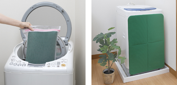 洗濯機で丸洗いOK(ネット使用)なのでいつでも清潔にお使いいただけます。さらに裏面が吸着するので、お洗濯の後は洗濯機にペタッと貼り付けて乾かせます!