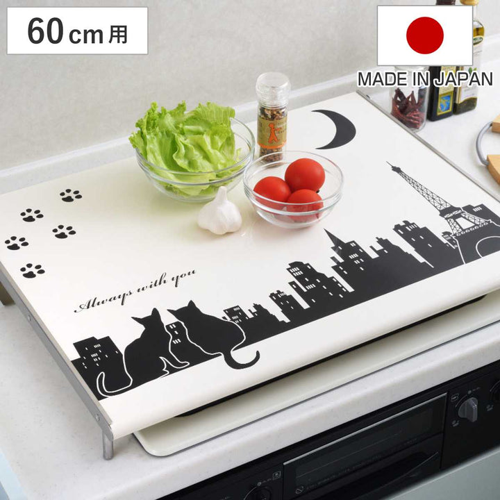 ●シックなネコのデザインがおしゃれなコンロカバーです。