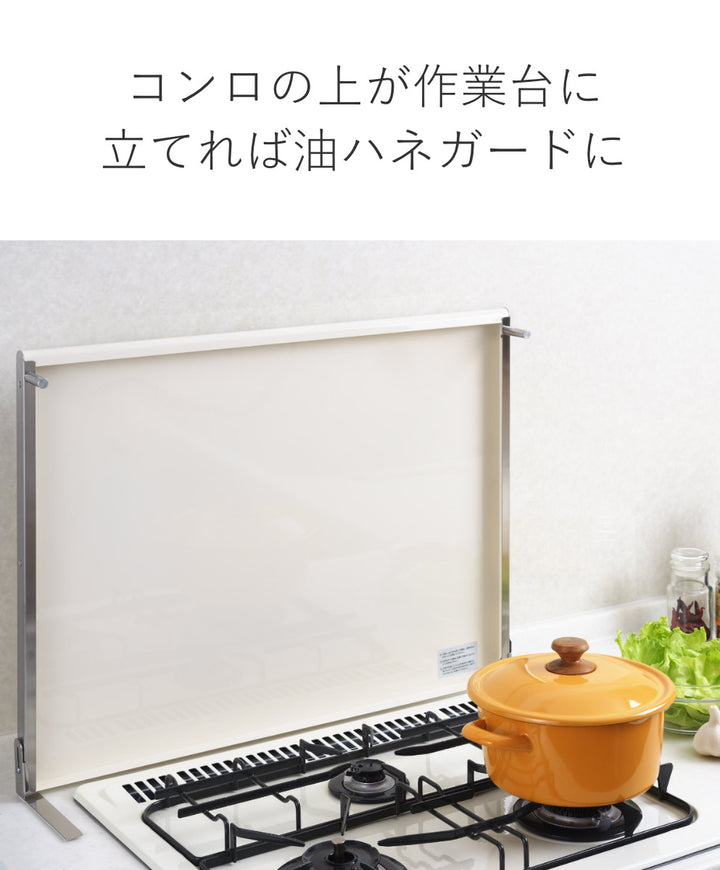 ●コンロ使用時は、立てて油ハネガードとして活躍します。