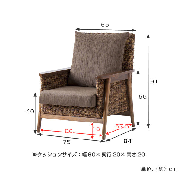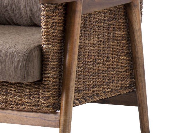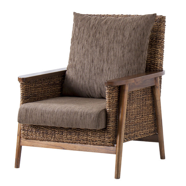 天然素材のアバカ素材マニラ麻を丁寧に編み込んだアジアンシリーズのパーソナルソファです。ふかふかのクッションで、座ったときに包み込まれるような心地よさがあり、リラックスしてお座りいただけます。美しいフレームデザインが級感を演出し、リゾートホテルのような空間を演出します。