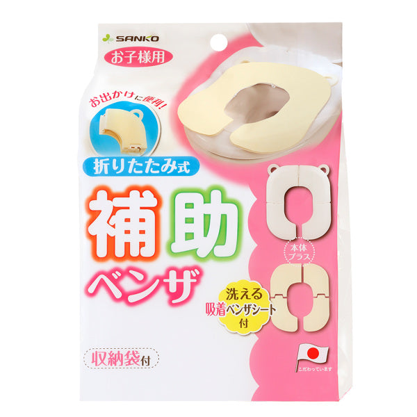 簡単に折りたためて外出時にも持ち運べる補助便座