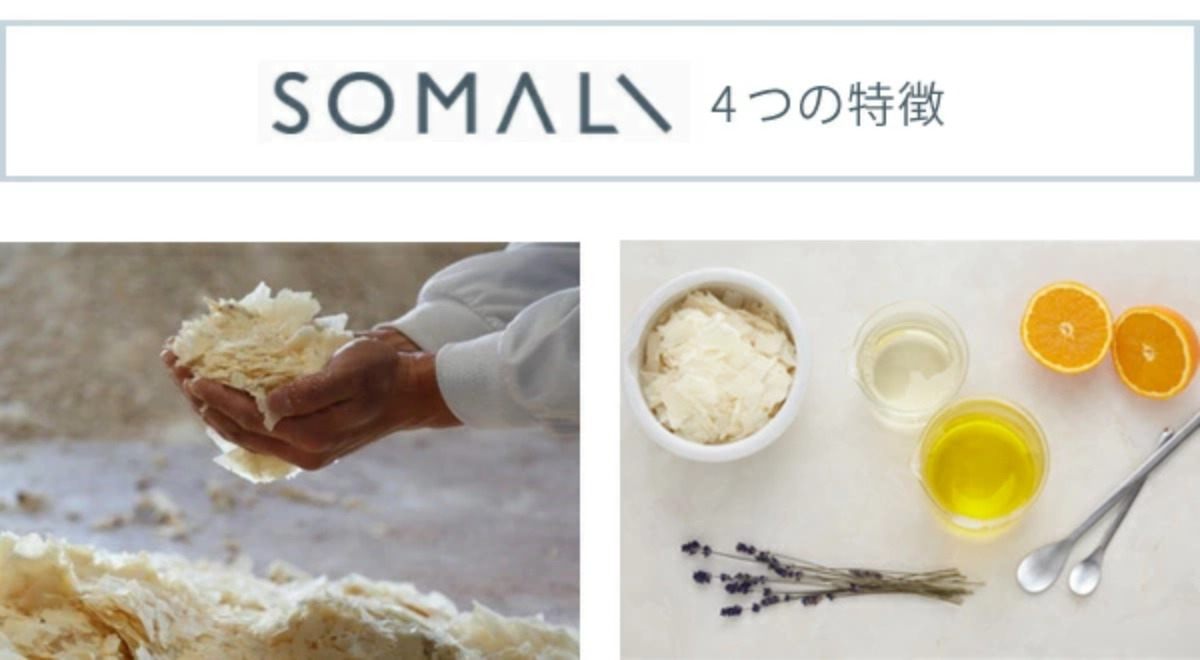 化学原料などに頼ったほうが簡単ですが、「そまり」はいかにシンプルに必要な素材だけで最高のものが出来るかというテーマに取り組んで開発されました。石けんの素から国内で手作りし、高品質の植物由来成分と、天然ミネラル由来成分のみが使われています。原料のほとんどが食品などで使用されるものです。