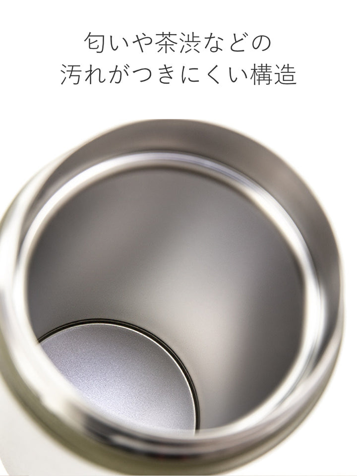 ボトルの内側に電解研磨を施し表面を平滑に仕上げているので、匂いや茶渋などの汚れがつきにくく、清潔にお使いいただけます。