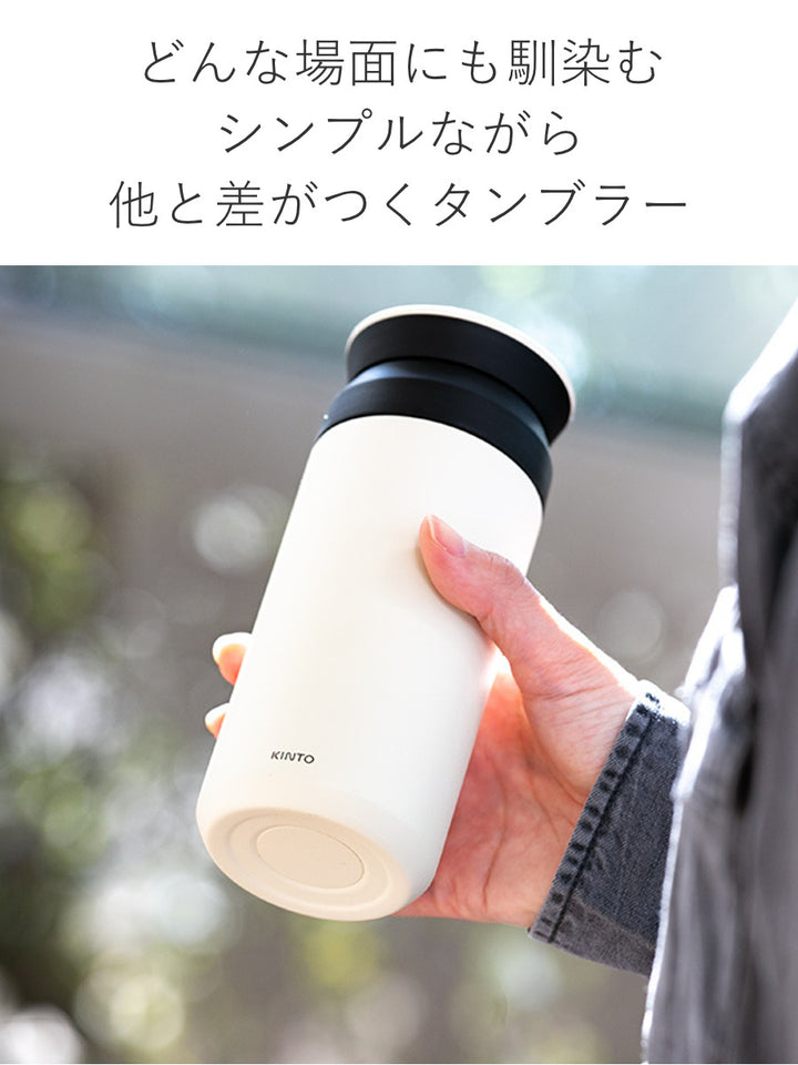 場所を問わず快適な飲み心地を体感できるステンレス製トラベルタンブラーです。ビジネスやアウトドアシーンなど、どんな場面でも飲み物の豊かな香りや美味しい温度を楽しむことができます。くすみカラーとさりげない「kinto」のロゴがおしゃれで、シンプルながら他と差がつくタンブラーです。