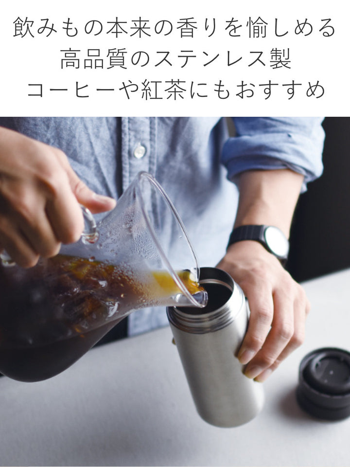 高品質なステンレス製で飲みもの本来の香りを味わうことができ、お茶やミネラルウォーターだけでなく、コーヒーや紅茶の持ち運びにもおすすめです。