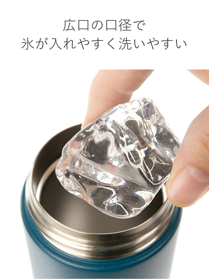広口口径なので、氷が入れやすく洗いやすいです。氷を入れることで保冷効果を高めることができます。