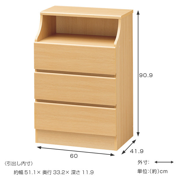 チェスト 幅60cm 3段 オープンスペース付 シンプルデザイン CHESCA