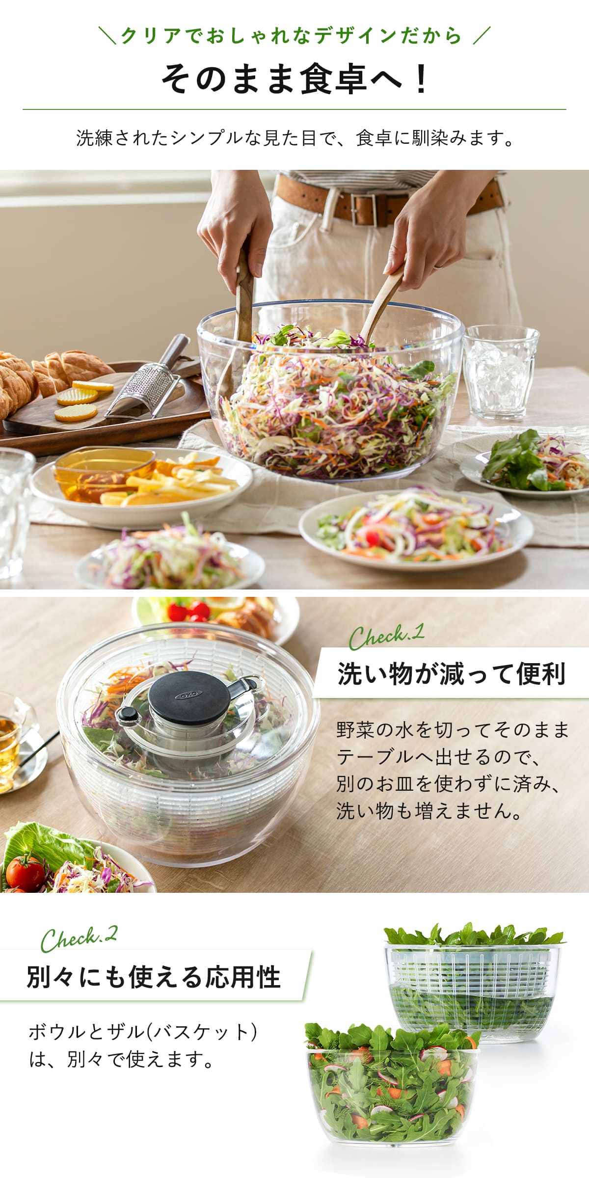 OXO サラダスピナー クリア 大 食洗機対応 野菜水切り器