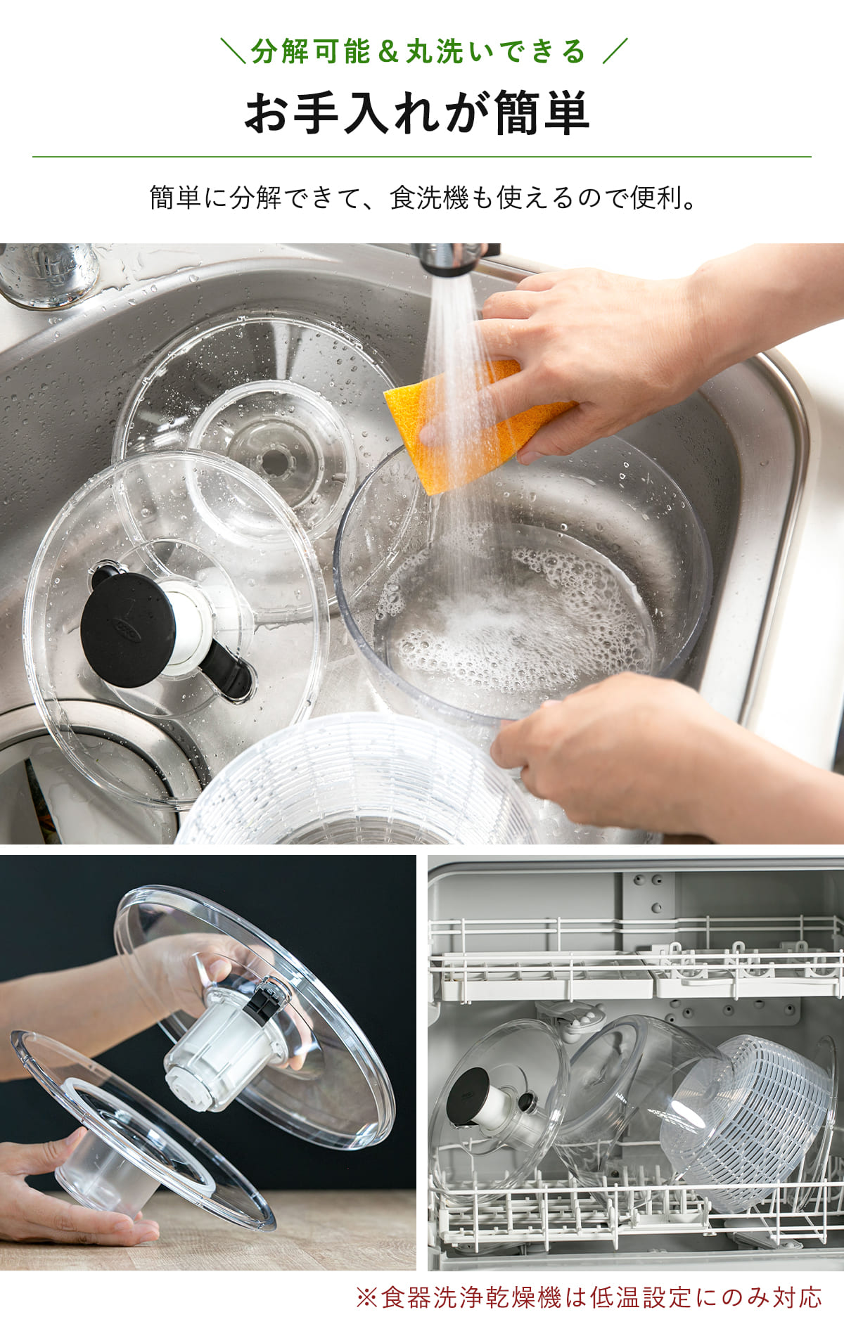 | 備考 | ※食器洗い乾燥機使用可能(低温設定のみ) ※漂白剤使用:バスケット・ボウルは可、フタは不可 |
