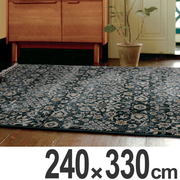 落ち着いた色合いのクラシカルな柄が印象的なデザインのラグです。ヨーロピアンテイストはもちろんシンプルなお部屋にもよく合い、インテリアに重厚感を加えてくれます。