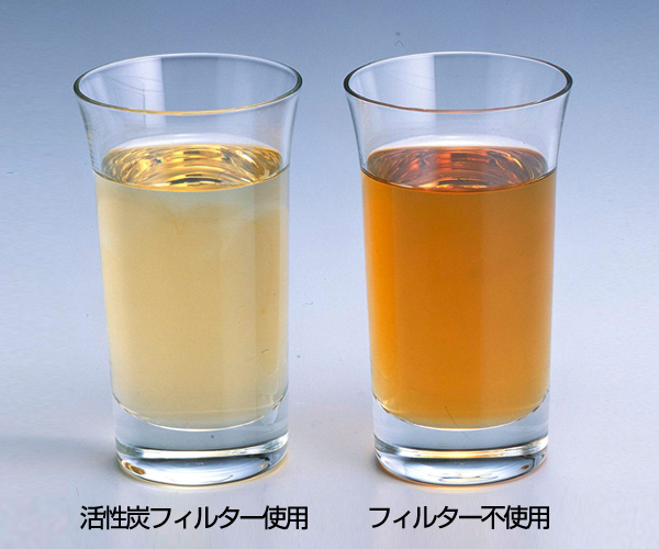 細かい汚れとニオイをカットする活性炭カートリッジを通すことで、一度使った油もきれいにリサイクルすることができます。通常のこし網だけでこした油と比べてみると違いは歴然!