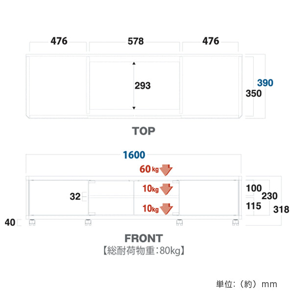 | サイズ | 約 幅160×奥行39×高さ31.8(cm) 重量:約24kg |