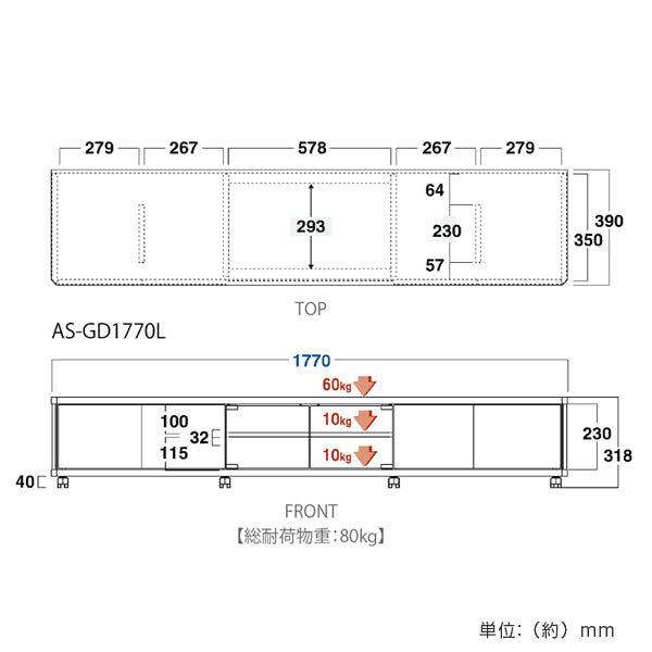 | サイズ | 約 幅177×奥行39×高さ31.8(cm) 重量:約25kg |
