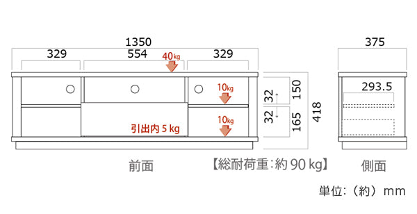 | サイズ | 約 幅135×奥行37.5×高さ41.8(cm) 重量:約29kg |
