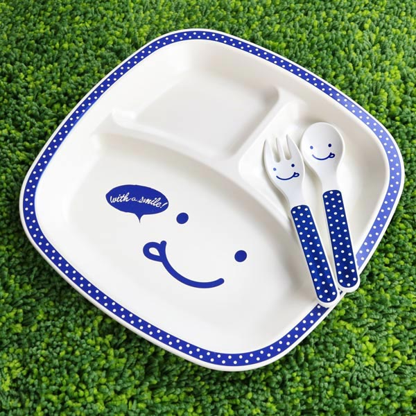スマイルマークの食器で、残さず食べればママもキミもにっこり