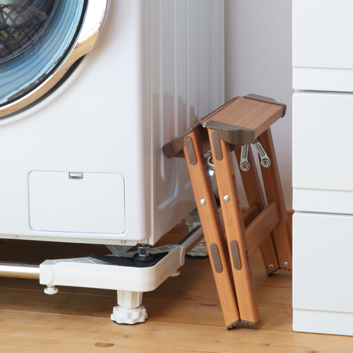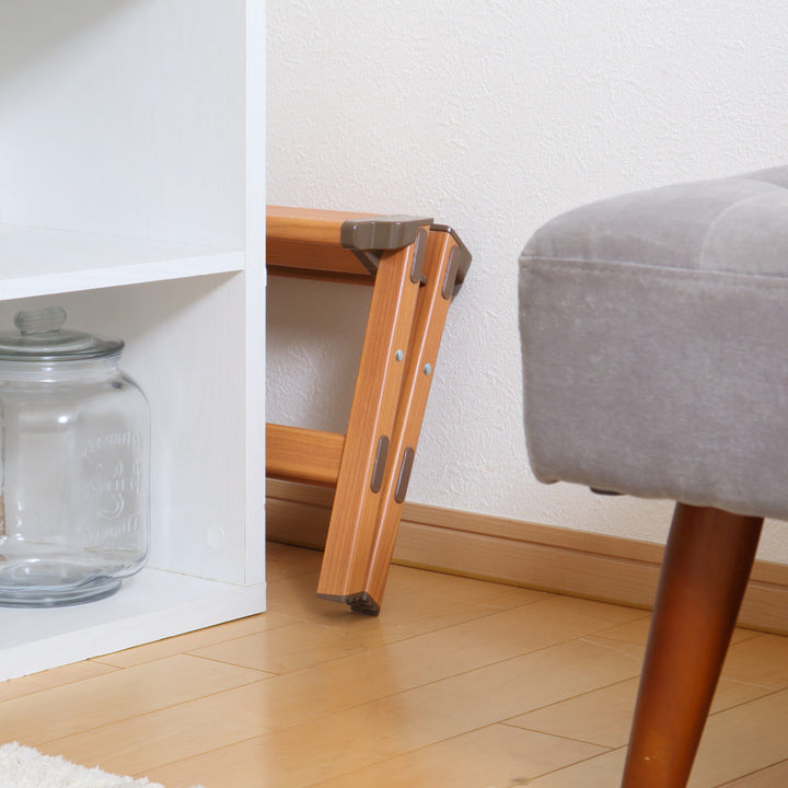 あとちょっとの高さに手が届く、便利な1段脚立です。オシャレな木目調デザインで、お部屋の雰囲気を損ないません。生活空間に溶け込むインテリア性に優れた脚立です。