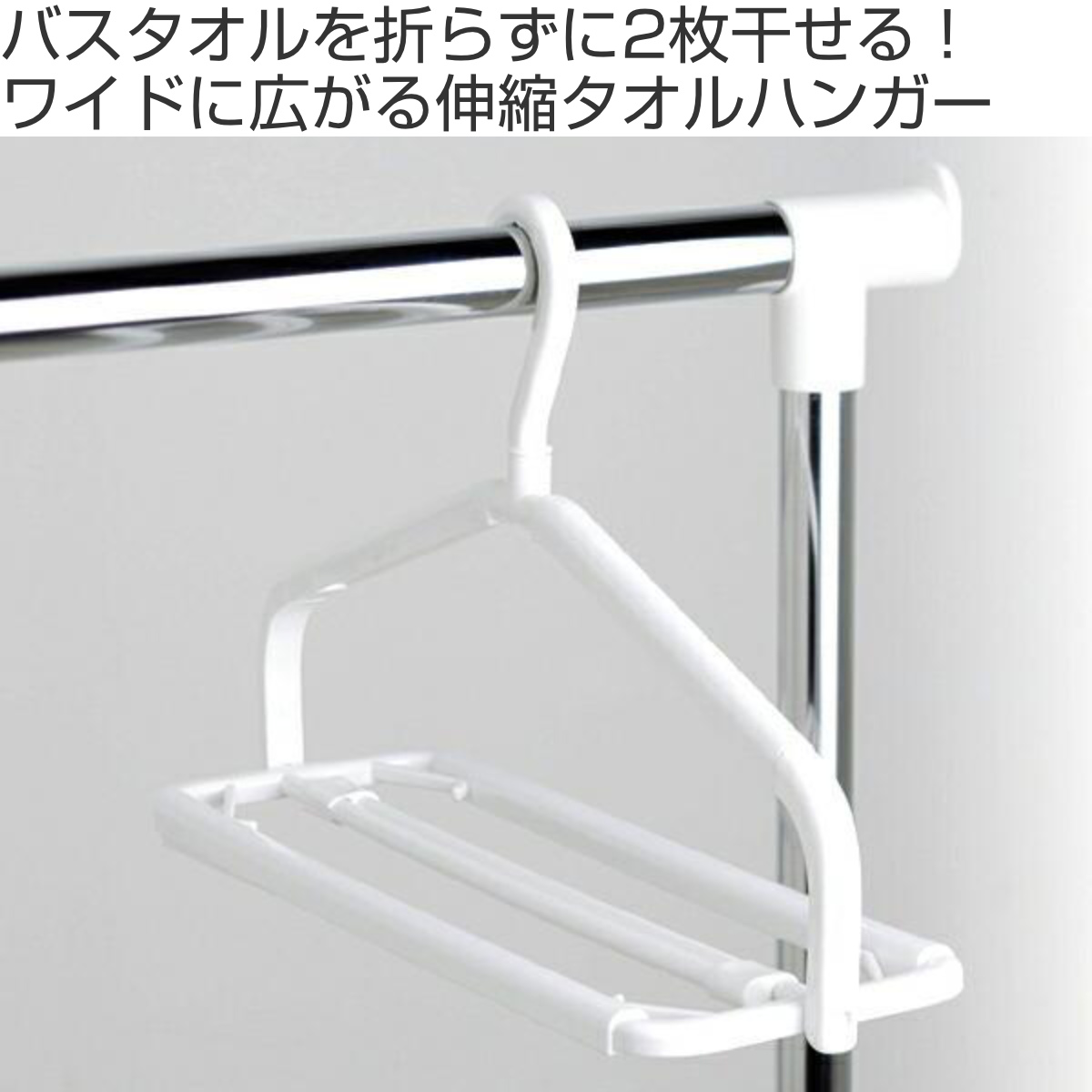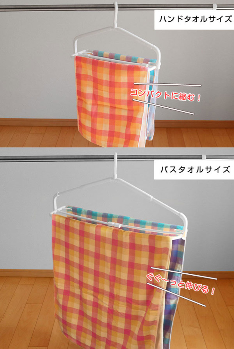 干すものに合わせて伸び縮みできるタオルハンガー