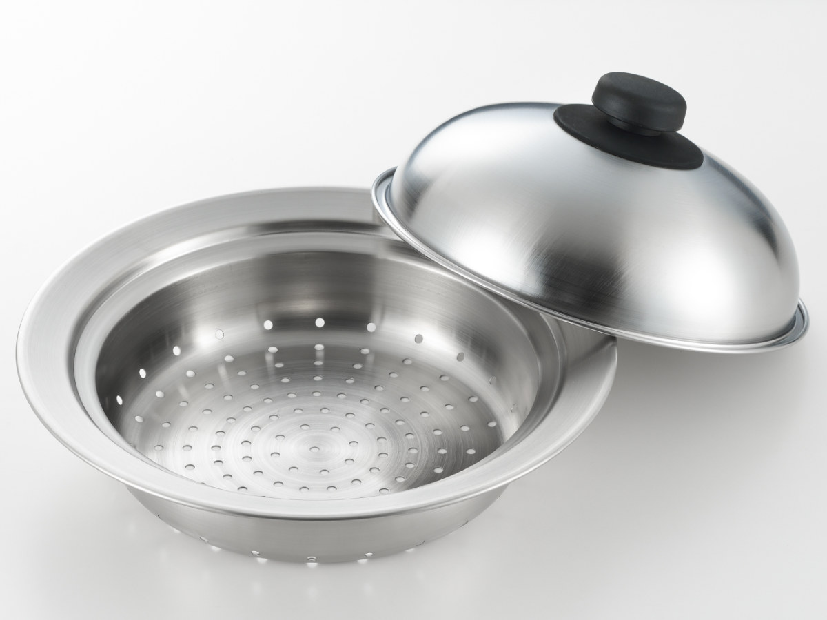 耐蝕性、耐久性に優れた18-8ステンレス製です。汚れやサビに強く、においも移りにくいので衛生的。竹のせいろのようにカビる心配もありません。