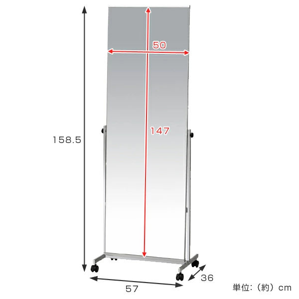 | 備考 | 鏡:飛散防止加工 ※キャスターはストッパー付き2個、ストッパーなし2個が付いています。 |