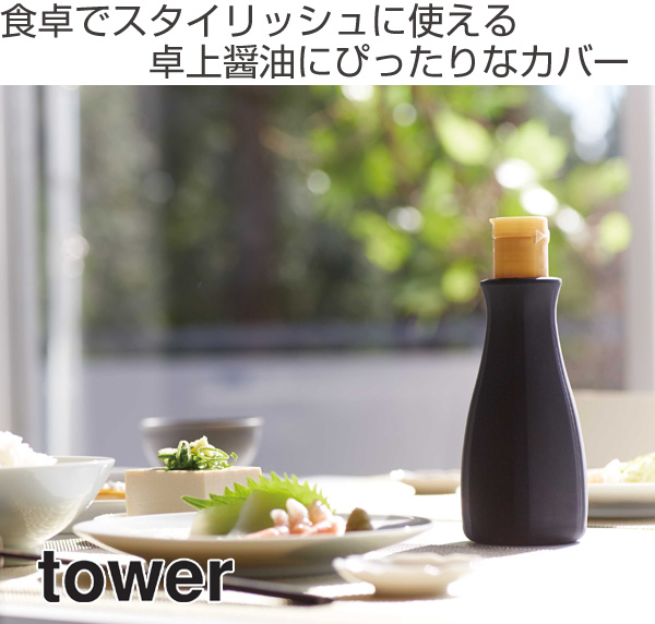 シンプルでスタイリッシュなデザインと抜群の機能性が大人気の「tower(タワー)」シリーズの卓上醤油カバーです。詰め替えができない、鮮度を保てるタイプの卓上醤油にぴったりです。カバーを付けると、卓上でもスタイリッシュにお使いいただけます。