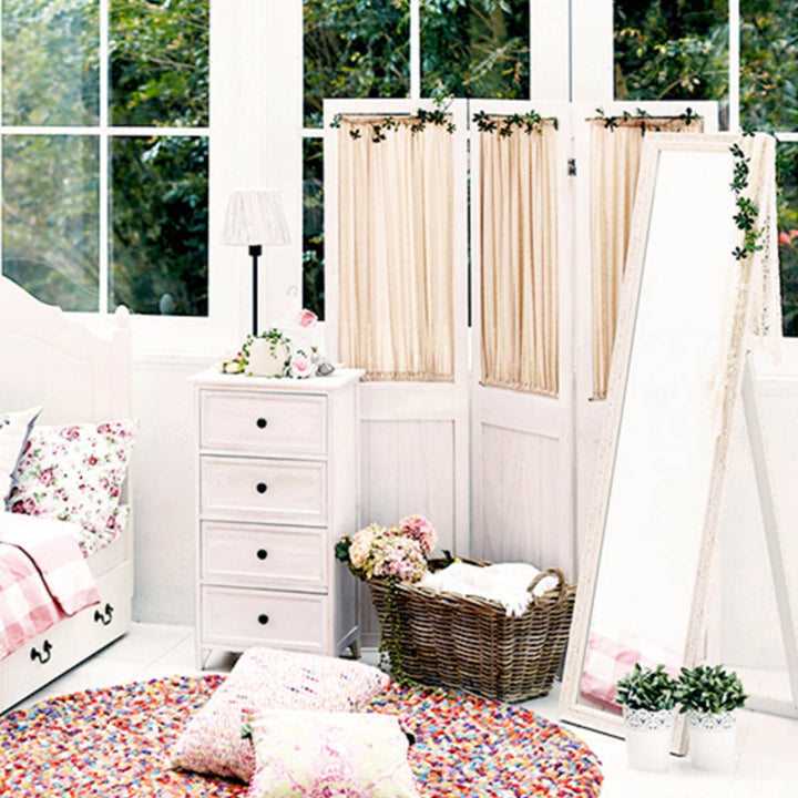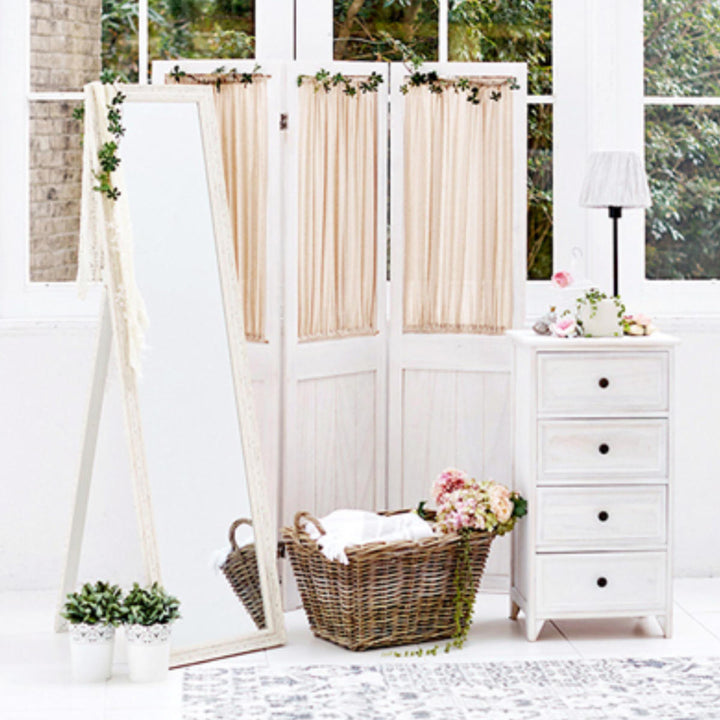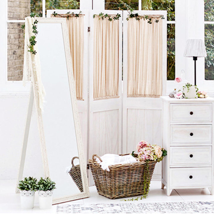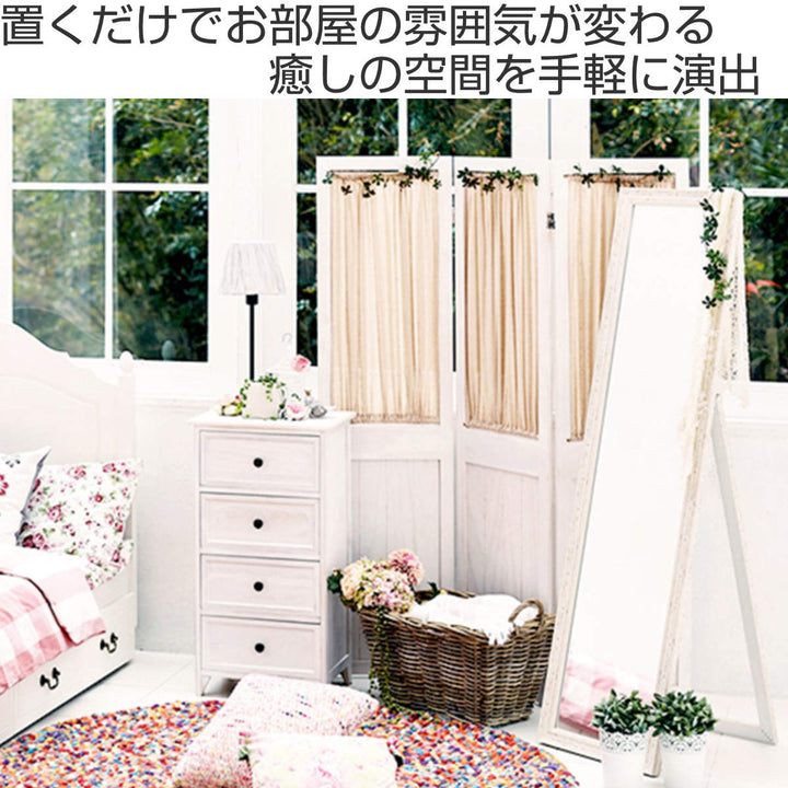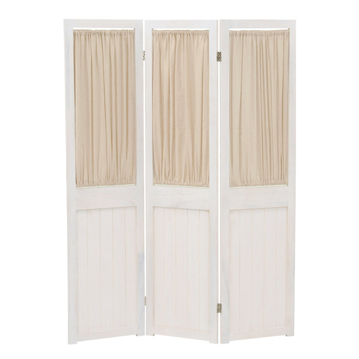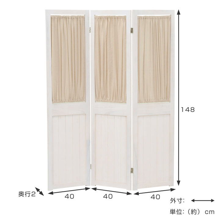 パーテーション 3連 衝立 カーテン付 天然木 フレンチカントリー シャビーウッド