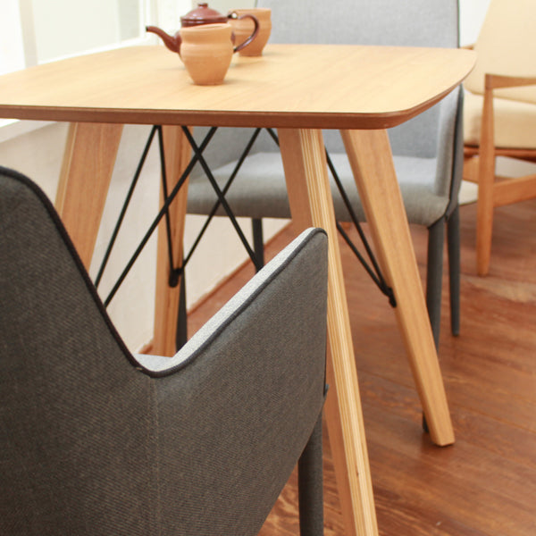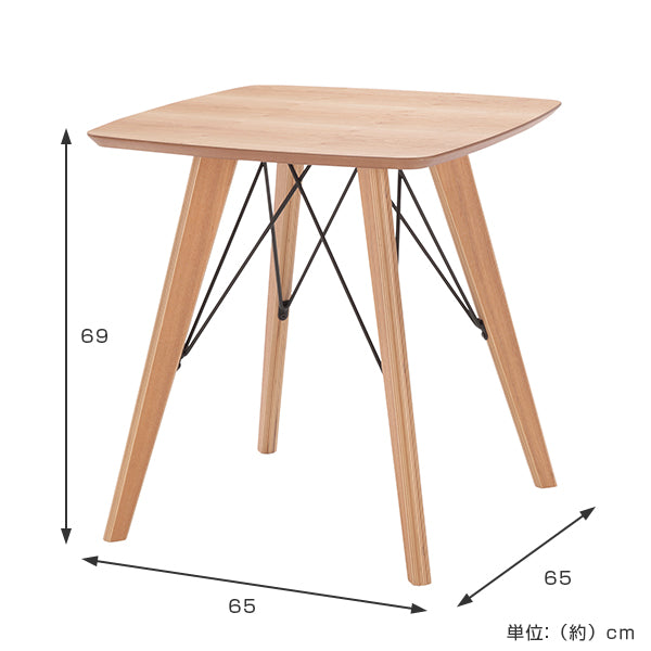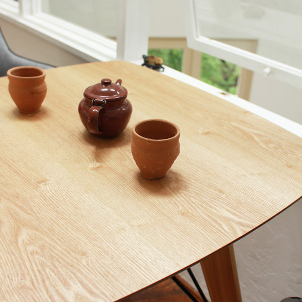 明るい木目のアッシュ材と下に向かって細くなるテーパード形状の脚が、すっきりとした印象を与えるカフェテーブルです。異素材のスチールが空間をひきしめるアクセントになっています。1人暮らしのお部屋や、2人で使用するのにぴったりのサイズです。