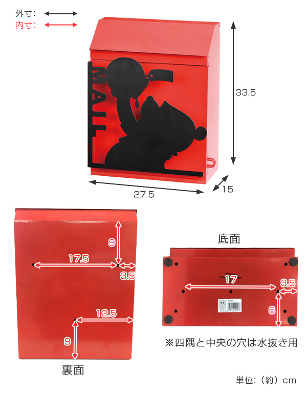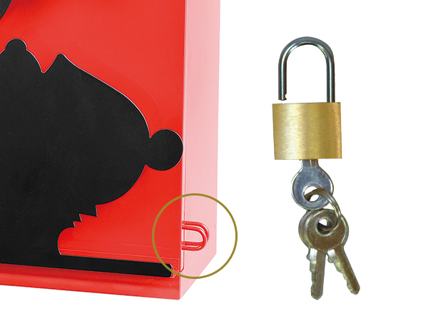 ●南京錠付きで、取出し口には鍵が掛けられるので旅行など長期の留守中も安心です。